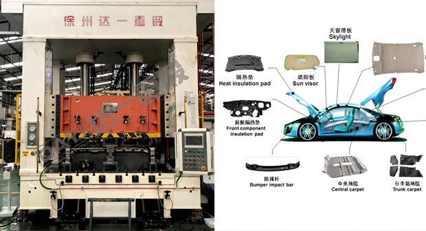 汽車內(nèi)飾件成形液壓機(jī)主要應(yīng)用于汽車內(nèi)飾件行業(yè)的熱壓成形及切邊工藝,如頂棚、地毯、座墊、防火壁絕緣墊、側(cè)圍、行李箱地毯等。