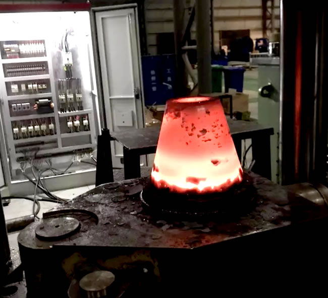 擺輾鍛造機是我公司針對汽車半軸相關產品獨特開發的特種成形設備,是國內先進的節能、節材、少無切削及機電一體化的高科技壓力成形設備。該設備具有投資小、耗能低、易維修、操作簡單等優點,輾壓力僅為常規鍛造的1/15-1/10,較普通鍛錘類設備具有效率高(提高3倍以上)、加工零件精度高、節約原材料、噪音低、振動小等優點。自擺輾鍛造機在我國正式生產和推廣以來,現已為汽車半軸等生產企業的必備鍛造制坯設備,并為我國汽車半軸的鍛造加工做出了巨大的貢獻。